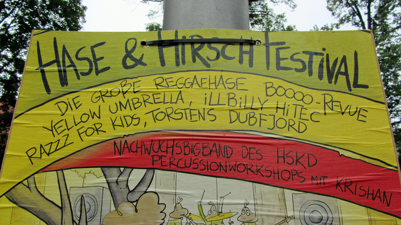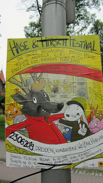 Plakate müssen nicht immer mit sterilen Druckschriften gestaltet sein. Lettering heißt im Moment das Zauberwort. Das geht einen schon manchmal auf die Nerven. Aber wenn das Plakat gut gemacht ist, wie im Fall von Hase und Hirsch, dann sieht es toll aus und lädt auch ein. Ziel erreicht.