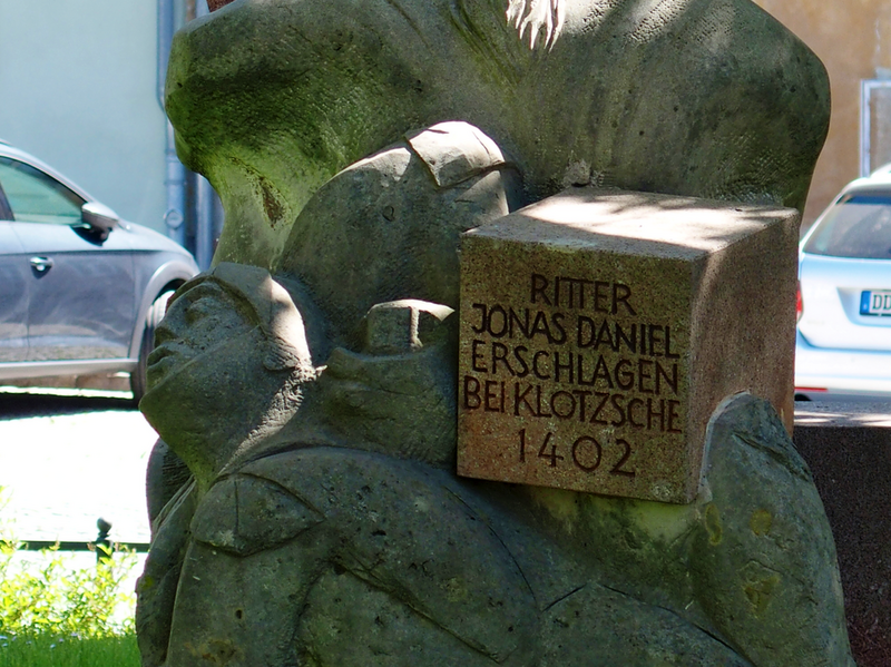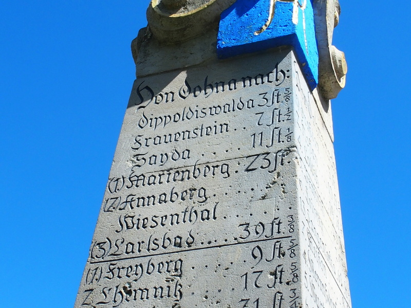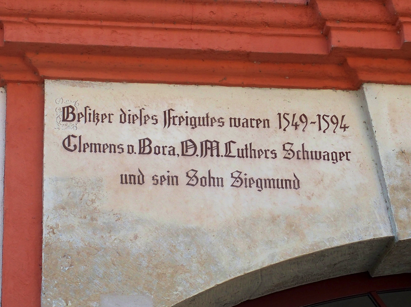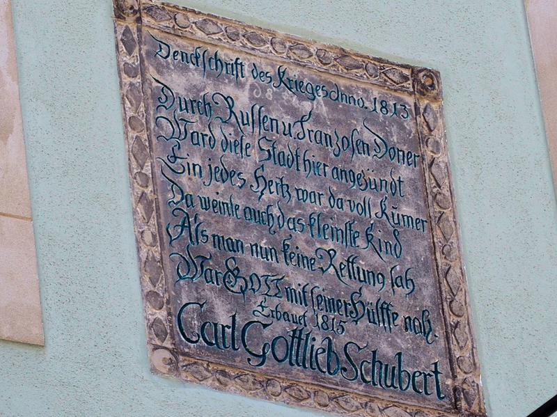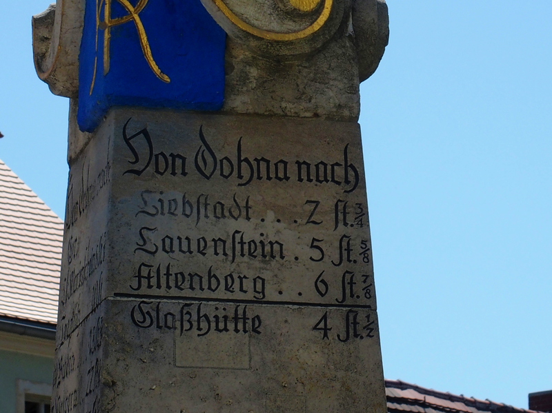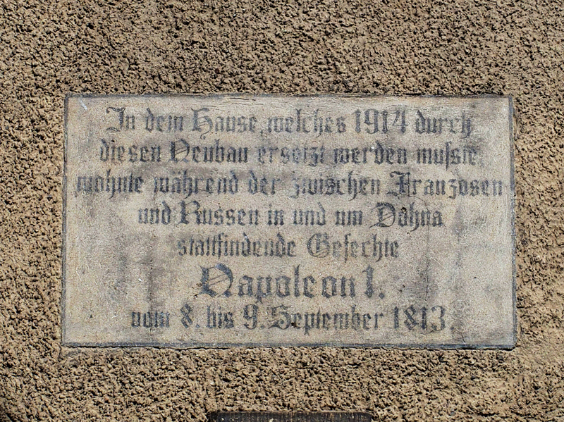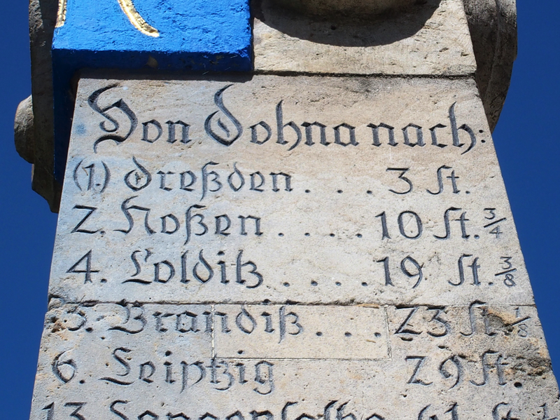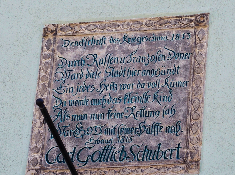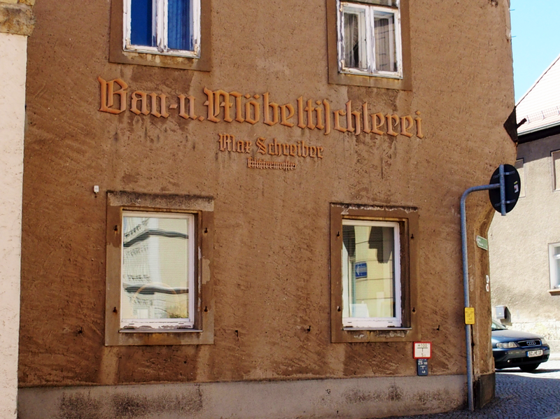 Als ich kürzlich bei einer Rückfahrt von einem Ausflug zum Schloß Weesenstein zufällig über den alten Markplatz von Dohna gefahren bin, fiel mir eine schöne alte Geschäftsinschrift an einer Hauswand auf. Das erweckte mein Interesse und ich nahm mir vor, noch mal wieder zu kommen.