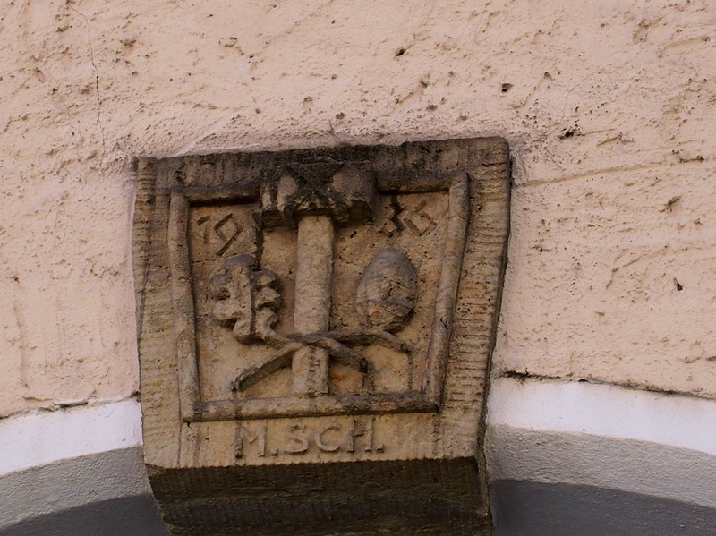 Auf dem Markplatz angekommen sind mir als erstes die vielen schönen alten Haus- und Bauinschriften aufgefallen. Meist sind diese Inschriften mit der Jahreszahl des Baues versehen und im Kerbschnitt oder einer Art Ritztechnik in das querliegende Balkenwerk eingearbeitet. Aber auch im Türsturz über dem