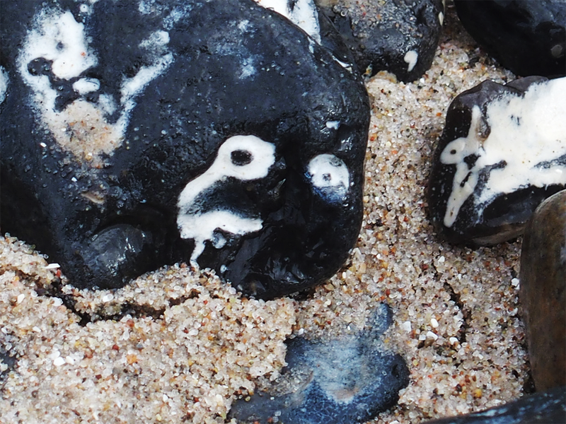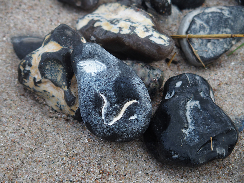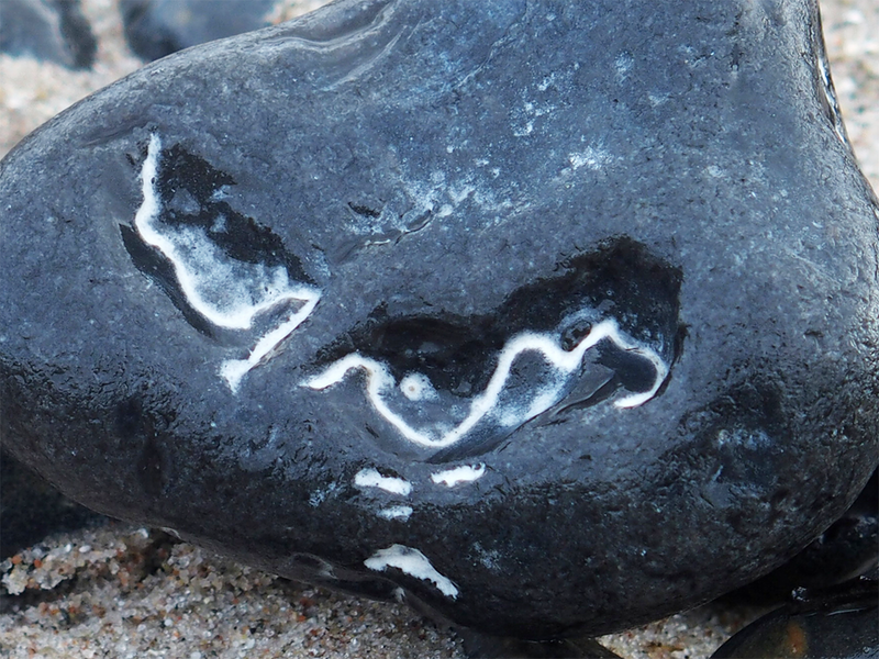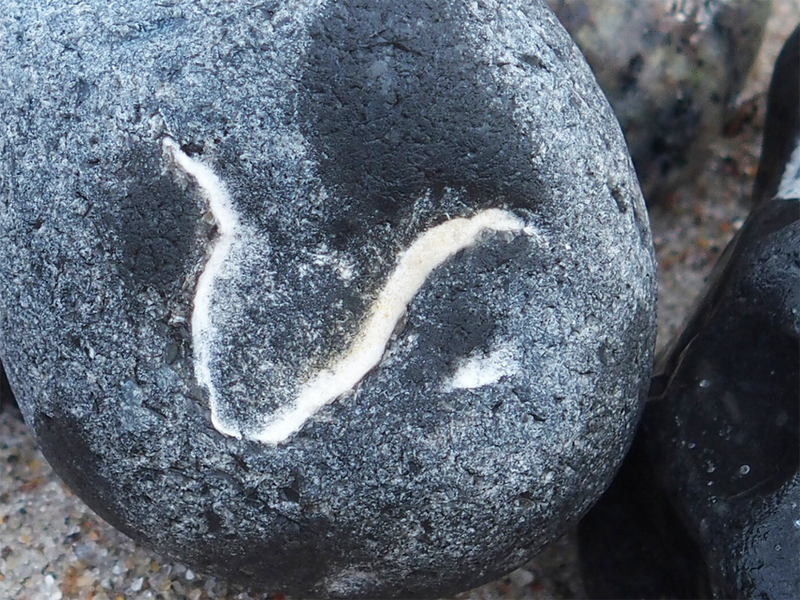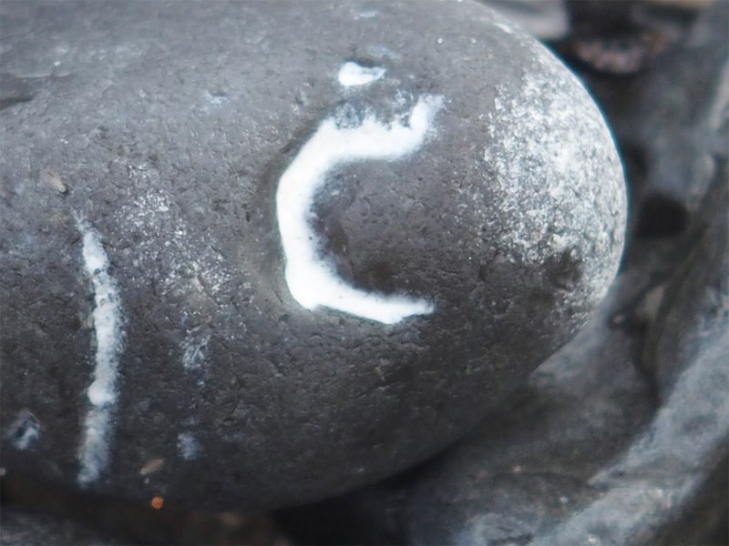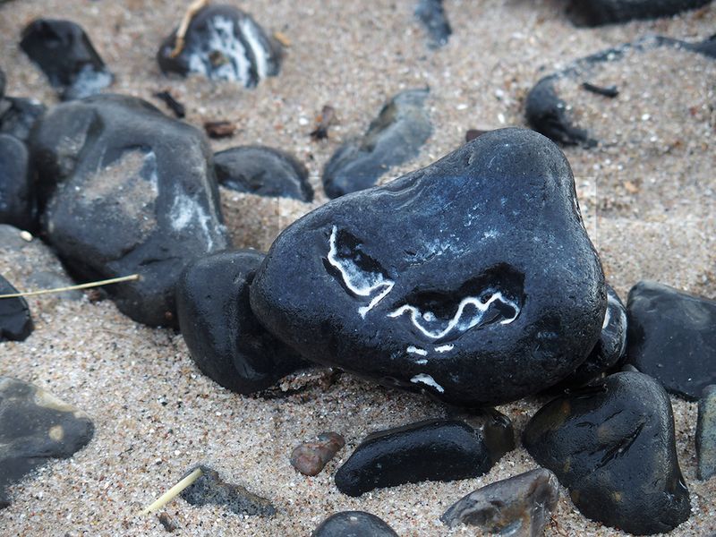 Aber hier sind immer viele Steine mit verschiedensten Zeichnungen zu finden. Natürlich sind die Buchstaben und Zeichen auf den Steinen nicht mehr als eine Laune der Natur von Meer und Wind. Trotzdem lassen sich bestimmte Buchstabenformen sehr gut erkennen.