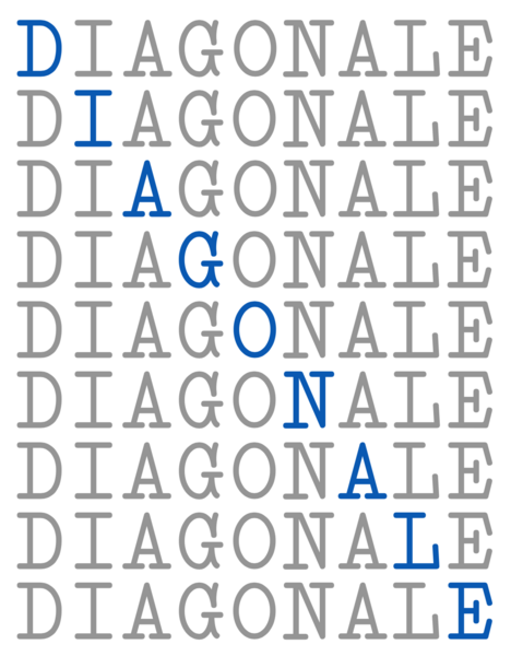 Ich hatte die Idee den Begriff „DIAGONALE” mit verschiedenen Typowritings umzusetzen. Ich benutzte dazu die Gestaltungsprinzipien „Wiederholung” und „Flächenbildung”. Außerdem sollte das Mittel der Farbe genutzt werden. Dies steht im Normalfall auf einer Schreibmaschine nur bedingt zu Verfügung und ist deshalb neu. Hier meine ersten Idee-Entwürfe: