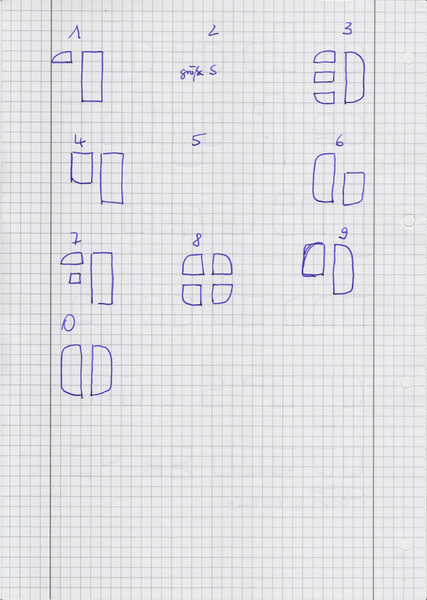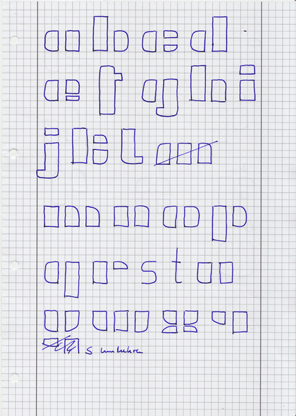 Voller Elan stürzte ich mich in die Arbeit. Als Erstes wollte ich mal die Schriftversion, die nur die Außenkontur nachzeichnet, erzeugen. Ich machte erste Skizzen und erstellte in einem Vektorgrafikprogramm ein geeignetes Raster zum Zeichnen der Buchstaben. Danach erstellte ich einen Baukasten, aus dem man einzelne Buchstaben zusammensetzen kann. So entstanden die Buchstaben p - o - a - c - e - d - b. Bei genauerer Prüfung der Fotovorlage zeigte sich aber, dass schon beim „p“ die Querröhren nicht passend eingefügt werden konnten. Also alles nochmal auf Anfang. Ich machte mich also nochmals in die Neustadt zur Post und machte nochmals Fotos. Die Schwierigkeit dabei war, dass der „post“-Schriftzug nicht direkt frontal fotografiert werden kann und somit die Schrift immer ein wenig verzerrt aufgenommen wurde.
