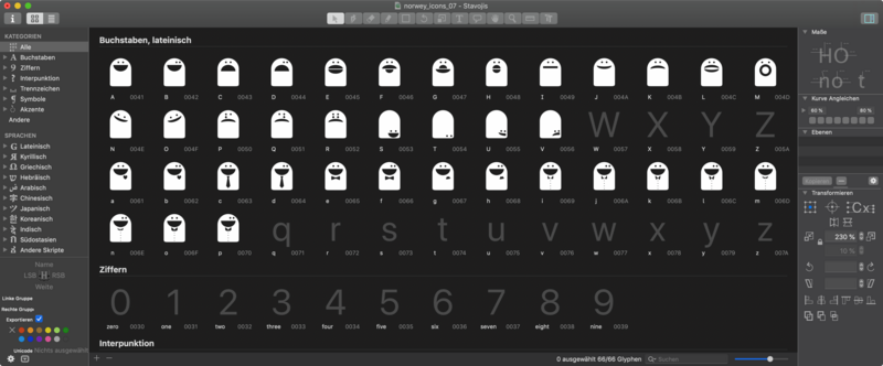 Es war in Stavanger auf einer meiner typografischen Entdeckungstouren durch verschiedene norwegische Städte. Ich war mit dem Schiff unterwegs und eigentlich lag das Hauptaugenmerk auf Norwegens wunderschöne Natur und Landschaft. Fjorde mit steilen Felswänden, tiefblaues Wasser, Wasserfälle von den Bergen und vor allem die Stimmungen und das Licht morgens und abends haben mich schon tief beeindruckt. Bei dem Halt in den Städten bleibt meist nicht viel Zeit für einen Stadtrundgang und vielleicht auch Kultur und Geschichte. Aber immer versuche ich meine ganz eigenen typografischen Entdeckungen aus den Städten mitzunehmen. Und es war also in Stavanger - kurz bevor wir auf das Schiff zurück sind - da habe ich dieses Geschäftsschild mit den zwei lustigen „Vögeln“ gesehen und fotografiert. Ich weiß nicht mal mehr, was es für ein Geschäft genau gewesen ist. Aber es stand für mich von Anfang an fest, da wird ein Icon-Font draus mit meinen ganz eigenen Stavojis.