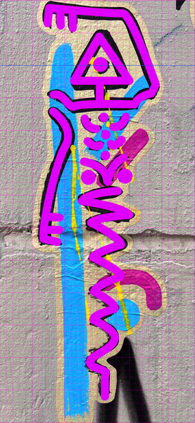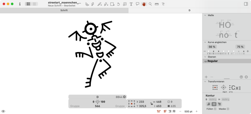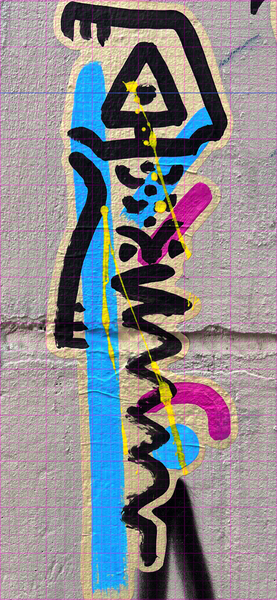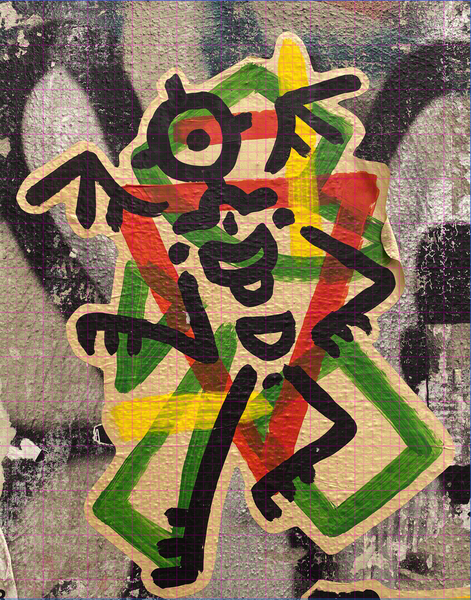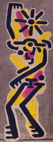 Danach kam der schwierigste Teil des Starts. Es musste eine für das Nachzeichnen geeignete Strichstärke festgelegt werden. Da die Paste-Up-Graffitis mit einem Pinsel gemalt sind, variiert die Strichstärke der Männchen je nach dem, wie stark mit dem Pinsel aufgedrückt wurde.