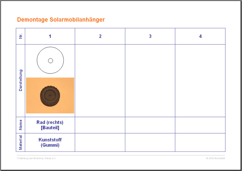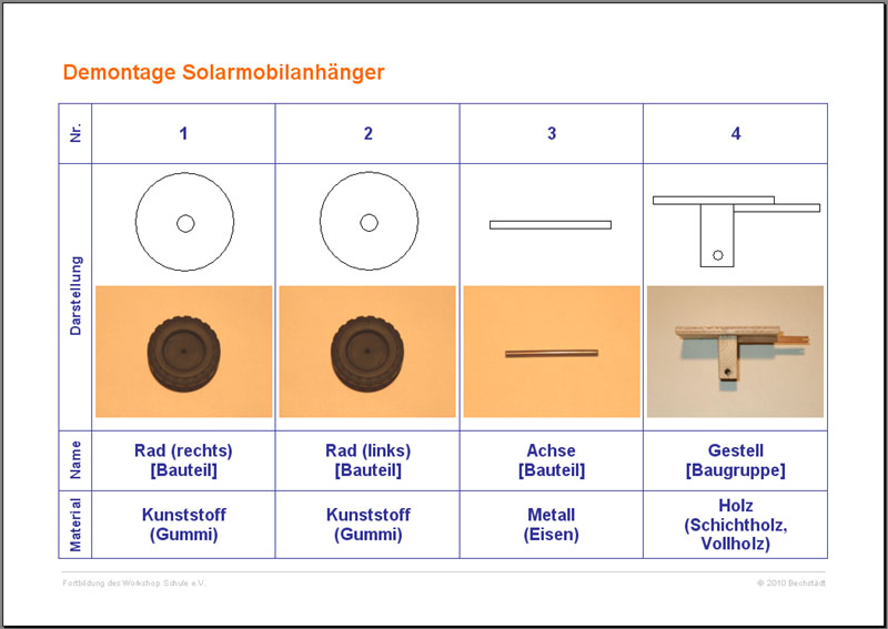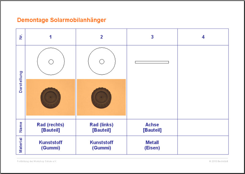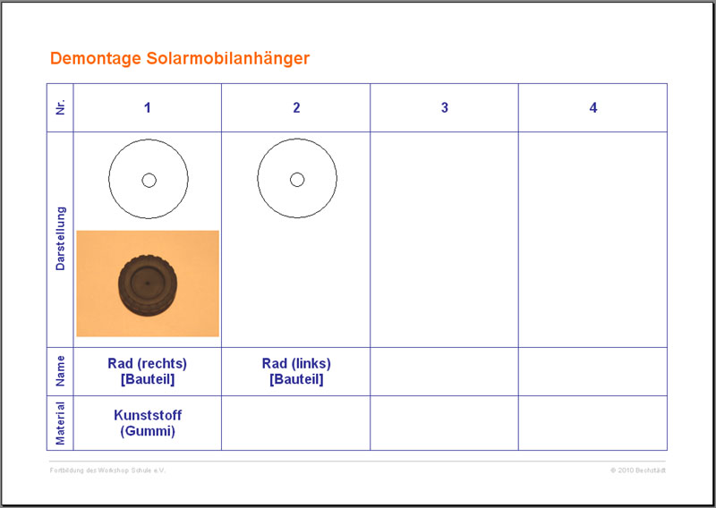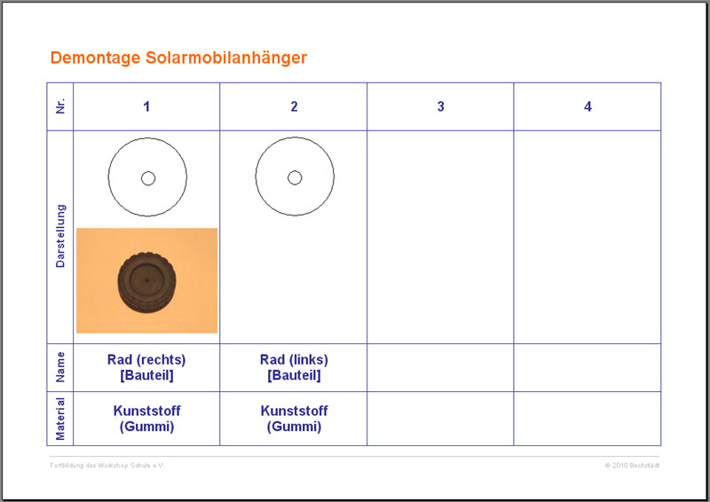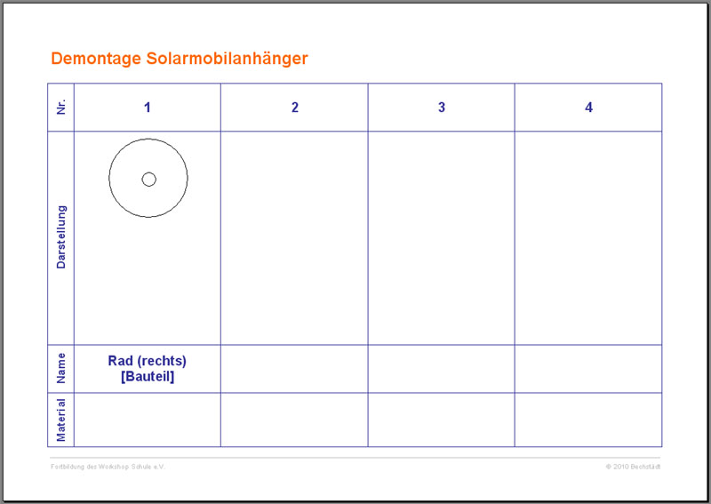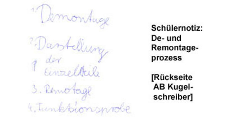 - die Einführung eines systematisch geführten De- und Remontageprozesses, der in der Doppelstunde 3 fortgeführt wird.