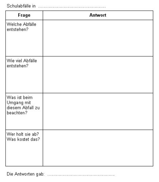 - Wo entstehen in Schule Abfälle?