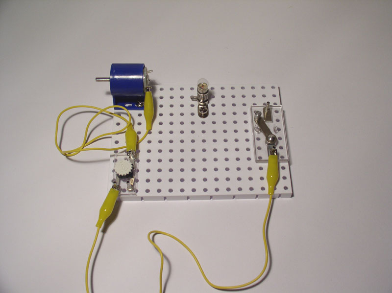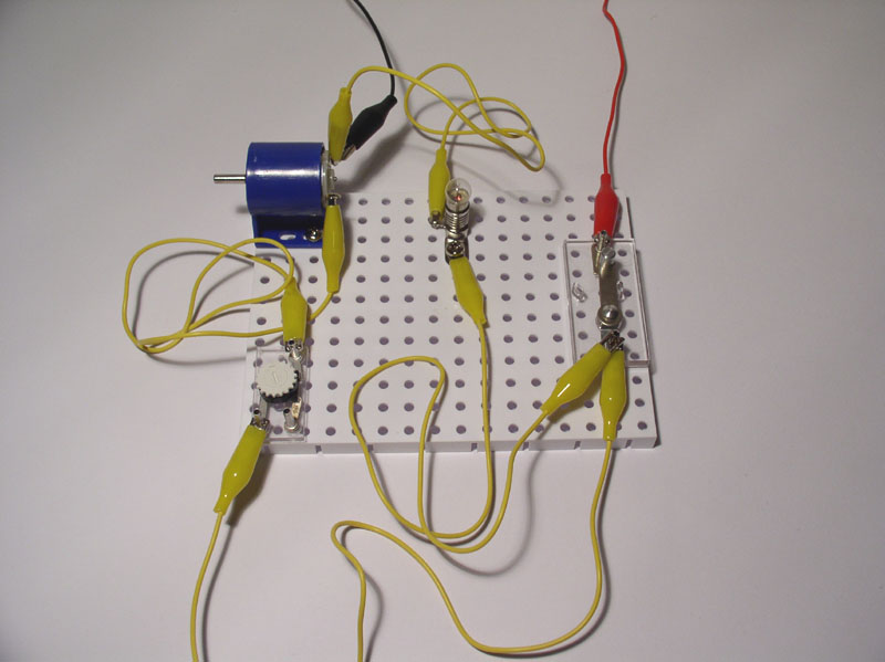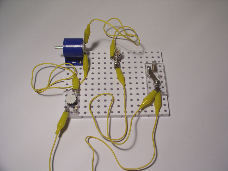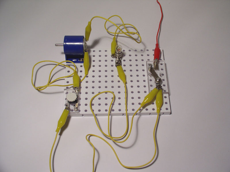 Im Sinne der "Weiterentewicklung der Schaltung", d. h. der Ergänzung der Beleuchtung für den Motor, sollte erst die Motorschaltung aufgebaut und dann durch die Parallelschaltung der Glühlampe ergänzt werden.