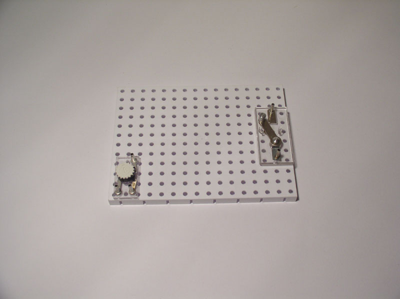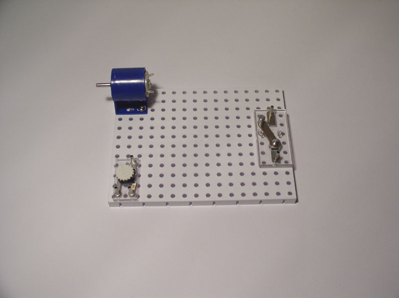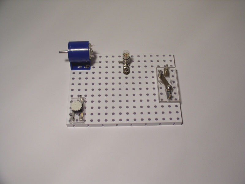 (Steckbrett, Taster, Widerstand, Elektromotor, vier Leiter, Spannungsquelle) - Positionierung/Befestigung der Bauteile auf dem Steckbrett