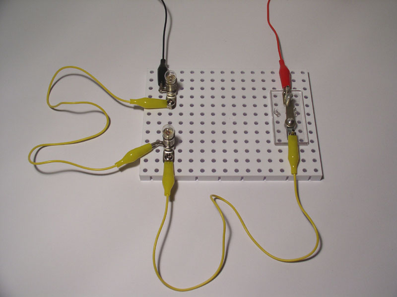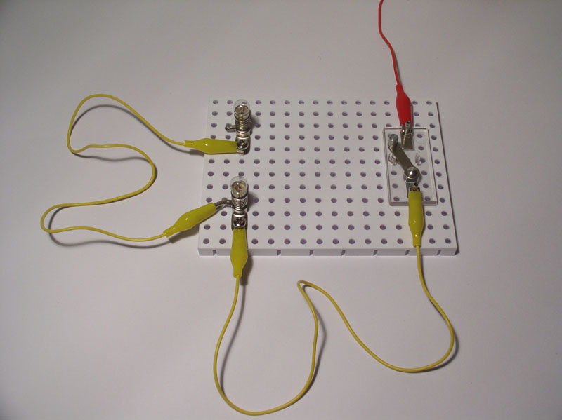 - Aufbau des einfachen Stromkreises mit nachfolgender Erweiterung durch Einfügen des zweiten Verbrauchers