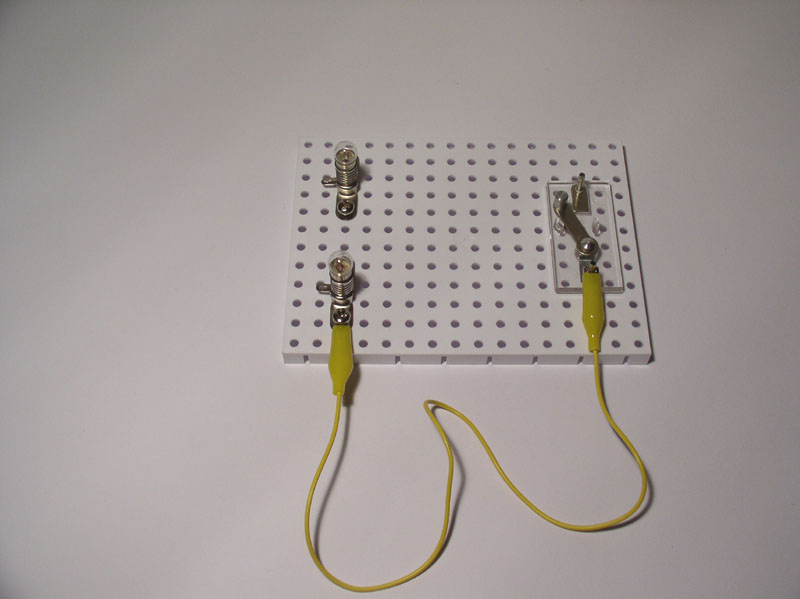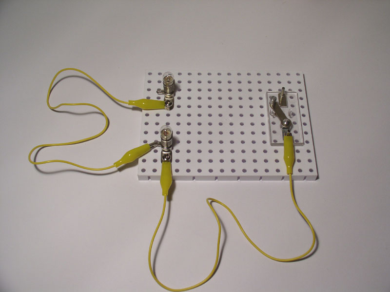 - Verbinden von Schaltelement (hier: Stellschalter) und Verbraucher 1 (hier: Glühlampe 1)