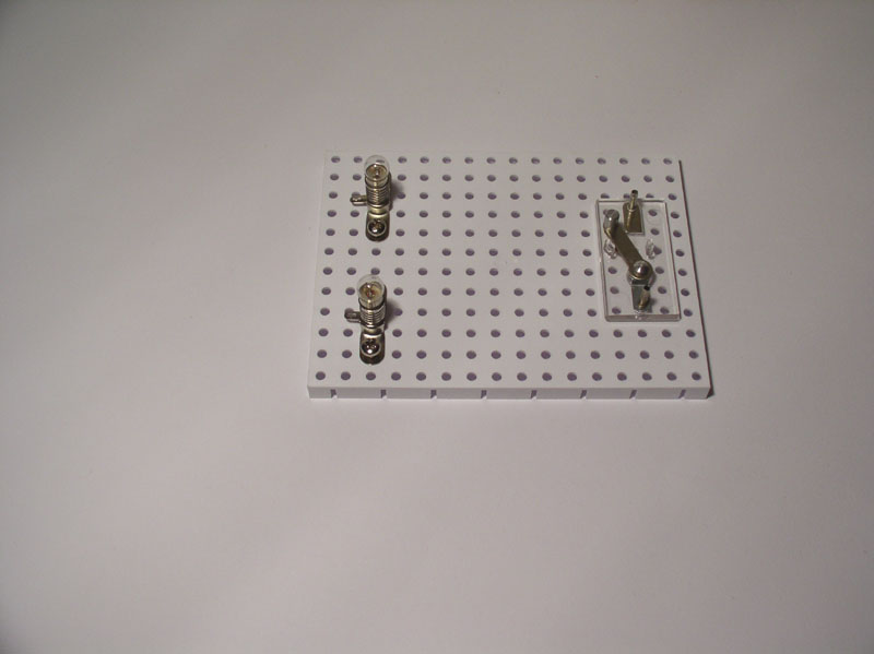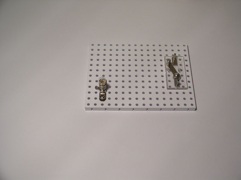 (Steckbrett, Taster, zwei Glühlampen, vier Leiter, Spannungsquelle) - Positionierung/Befestigung der Bauteile auf dem Steckbrett