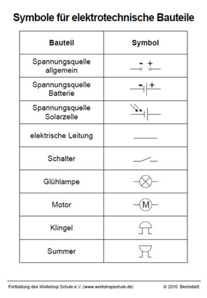 Leider gibt es weltweit sehr unterschiedliche Normen, d. h. für das gleiche Bauteil werden unterschiedliche Schaltzeichen verwendet. Bei den hier eingestellten Materialien handelt es sich um Vorschläge. Sie beruhen auf der Darstellung der Schaltsymbole der europäischen Norm (EN). Die Schaltzeichen sind didaktisch begründet vereinfacht.