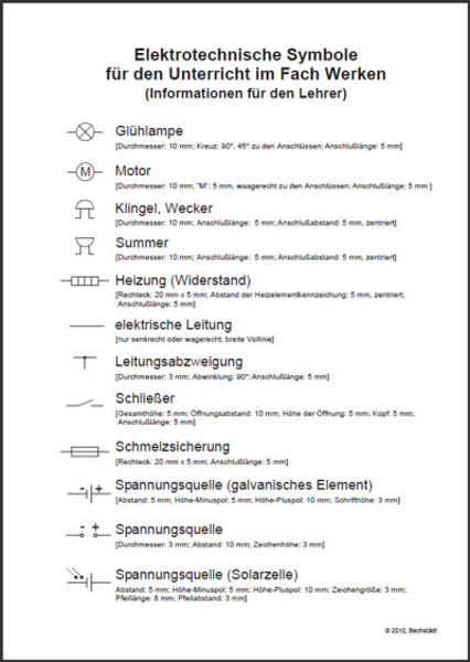 - Die Schülervorlage enthält häufig auftretende Schaltzeichen für: