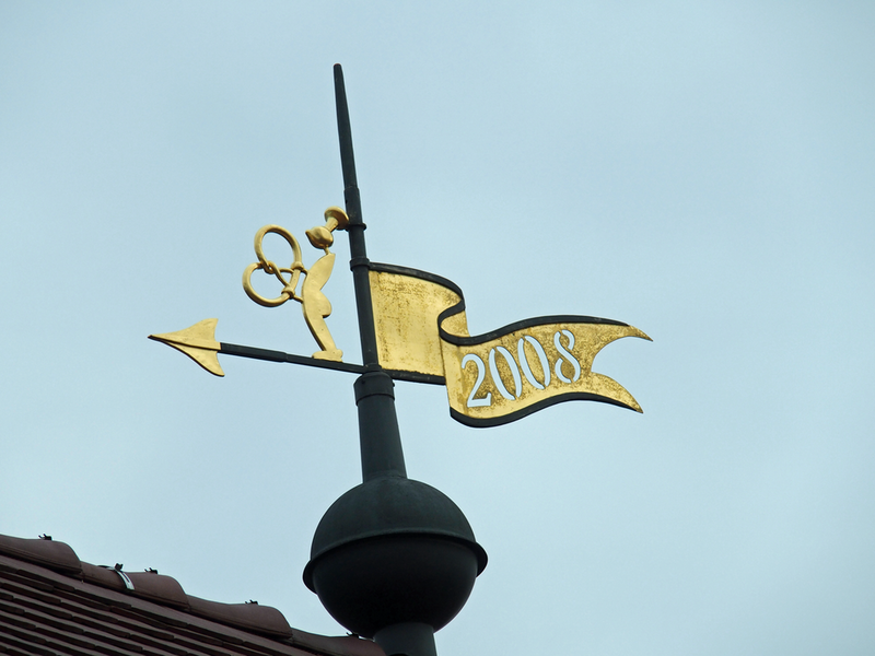 Mit der geschichtlichen Entwicklung wanderten die Wetterfahnen von den Burgen auf die Kirchen und Rathäuser. Immer für den Wind frei zugänglich und für die Bürger gut sichtbar.