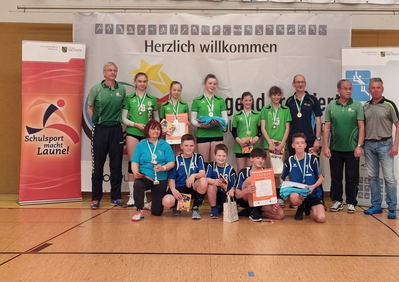 Durch die Lockerungen der Corona-Maßnahmen wurde eine Durchführung der Landesfinals in Dippoldiswalde vor Ostern möglich. Unsere Schulmannschaften konnten die Regionalstelle Dresden in der Wettkampfklasse III (2007 – 2010) Jungen und Mädchen sowie in der WK IV (2009 – 2012) Jungen vertreten. Den Anfang machten die älteren Schüler/innen der 7.-9. Klassen am 13. April 2022. Da der Großteil nur im GTA-Bereich ein Mal wöchentlich trainiert, wurde am Wettkampftag schnell deutlich, dass wir mit den besten Mannschaften im Land Sachsen nur schwer mithalten können. So belegten beide Mannschaften den 5. bzw. 6. Platz, haben aber viel gelernt und nehmen neue Erfahrungen in das folgende Training mit.