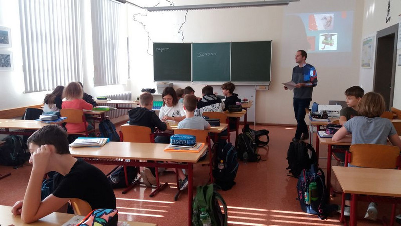Die Französischschüler der 6a waren völlig überrascht, als plötzlich ein „echter“ Franzose vor ihnen stand. Jordan aus der Nähe von Paris unterhielt sich mit unseren kleinen Franzosen! Nach dem kurzen Erstaunen folgten 45 Minuten, in denen sich Jordan wort- und bildreich vorstellte. Die Schüler verfolgten diesen Einstieg und dank vorbereiteter Satzteile, die sie aufmerksam zusammenfügten, konnten sie auch (fast) alles verstehen. Einigen gelang es sogar, sich kurz mit Jordan zu unterhalten.Toll!