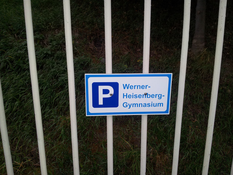 Auf Grund der zunehmenden Zahl von Parkbeschränkungen um die Schule hat die Schulleitung mit der Fa. Werfel vereinbart, dass wir als Lehrer mit einem entsprechenden Parkausweis ingesamt 8 Stellplätze zwischen Schule und Firmengelände nutzen können.