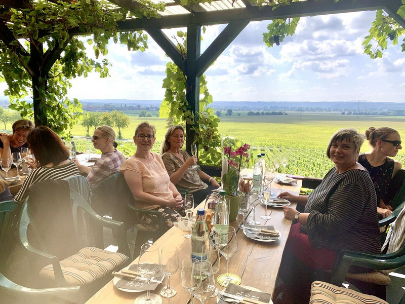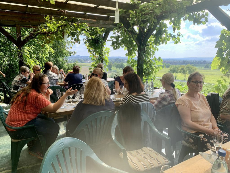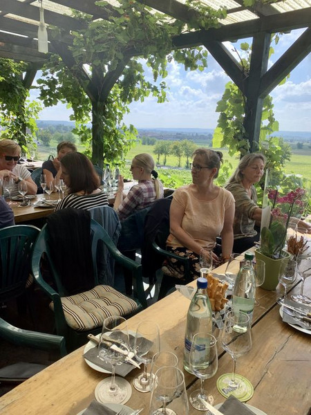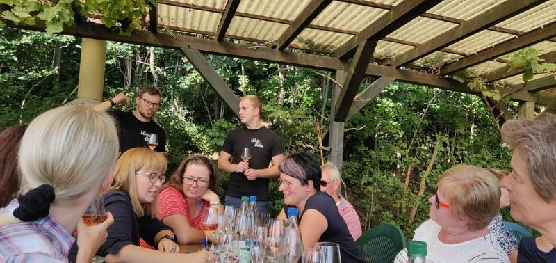In der Vorbereitungswoche trafen sich die Lehrer und Lehrerinnen des WHG zu einer teambildenden Maßnahme in Loose’s Besenschänke in Gröbern, Niederau. Das schöne Wetter und der angekündigte Lokführerstreik veranlassten nicht nur die Sportlehrer*innen zu einer Fahrradtour. Schwitzend und durstig erreichten die Kolleg*innen aus Riesa, Dresden und Meißen den Weinberg und wurden mit einer köstlichen Stärkung belohnt.