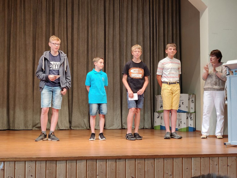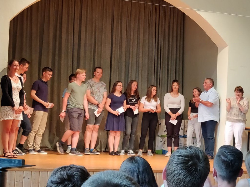 Einige glänzten mit Bestnoten auf dem Zeugnis, andere haben es in Wettbewerben unterschiedlicher Disziplinen wie beispielsweise Chemie, Mathematik, Informatik, Kunst, Französisch oder Sport sehr weit gebracht. Auch dauerhaftes Engagement, z.B. beim Filmen von Auftritten oder bei der zeitintensiven Pflege unserer Aquarien wurde gewürdigt.