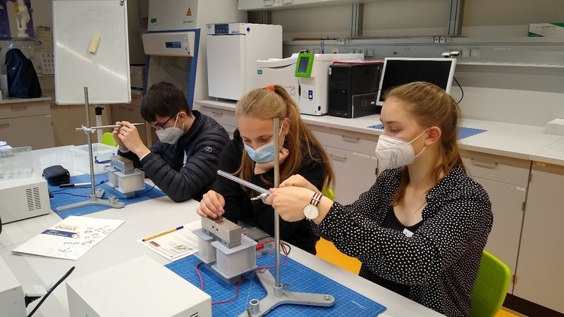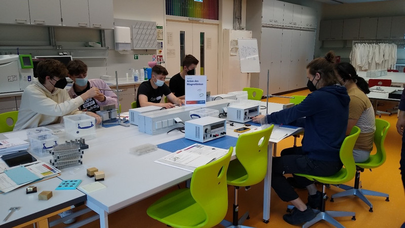 Nachdem am 16. Mai die Schüler der 9. Klasse aus dem naturwissenschaftlichen Profil ihr Wissen zu Licht und Farben im Schülerlabor DeltaX vertiefen konnten, durften zwei Wochen später, am 30. Mai auch die Schüler des Physik-Leistungskurses zusammen mit ihrer Physiklehrerin und Tutorin Frau Dr. Förster ihr Forschungstalent zur Schau stellen. Die zwölf Schüler erwartete ein buntes Programm zum Thema Magnetismus.