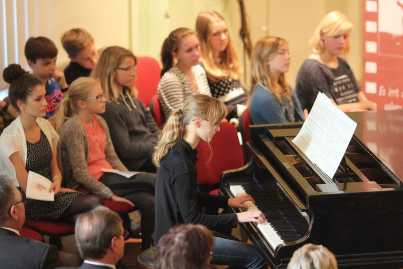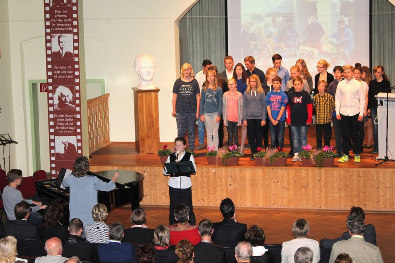 Am 2.10.2015 fand in unserem Gymnasium die Festveranstaltung anlässlich des 50-jährigen Jubiläums der MINT-Schule statt, welche die drei vorangegangenen Festtage abgerundet hat. Das Programm der Veranstaltung war jedoch keineswegs rein naturwissenschaftlich, sondern höchst kulturell geprägt. Schüler von der sechsten bis zur zwölften Klassenstufe engagierten sich einzeln und in Gruppen mit dem Spielen von Flöte und Klavier sowie mit Gesang. Zum Schluss standen alle Beteiligten gemeinsam auf der Bühne und führten ein Lied auf.