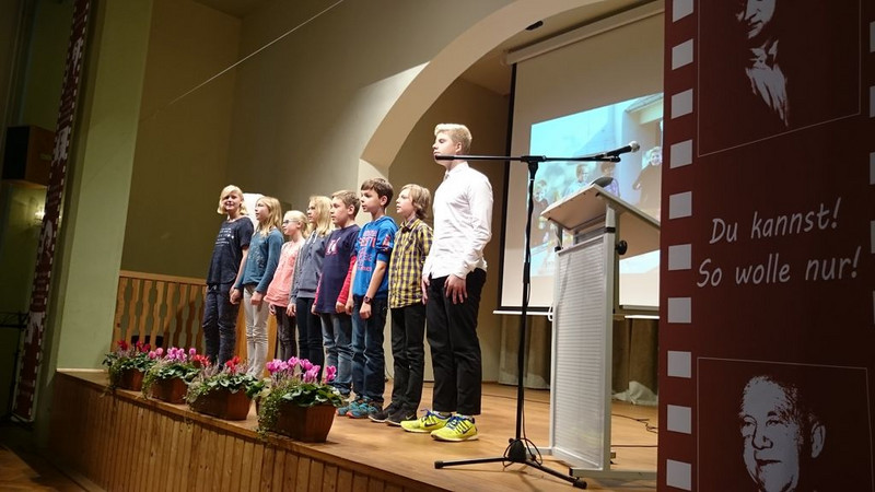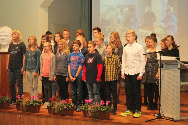 Doch es gab nicht nur Zeit zum Genießen, sondern auch zum Nachdenken. So wurden Parabeln über Leistungsdruck und Erziehung vorgelesen. Natürlich lohnte es sich auch, den Festreden von Herrn Jähnel und Frau Mebus zuzuhören, die einen Einblick in die Geschichte und die weiteren Aufgaben unserer Schule gaben, sowie den Ansprachen der geladenen Gäste.