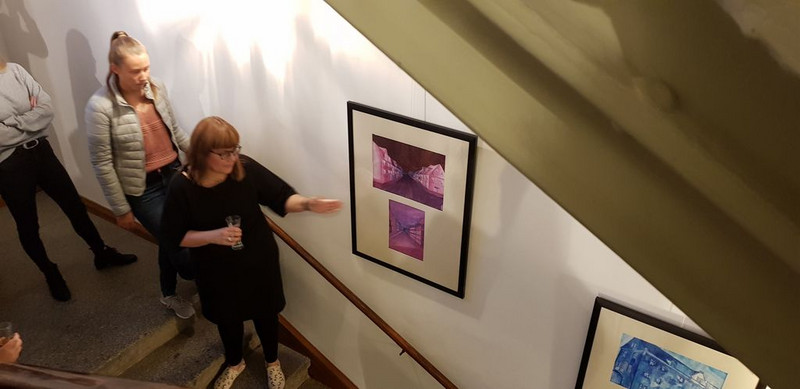 Gemeinsam mit Herrn Müller führten die anwesenden Künstlerinnen und Künstler durch die Ausstellung und beantworteten fachkundig Fragen zur Technik und der Intention der Gestaltung.