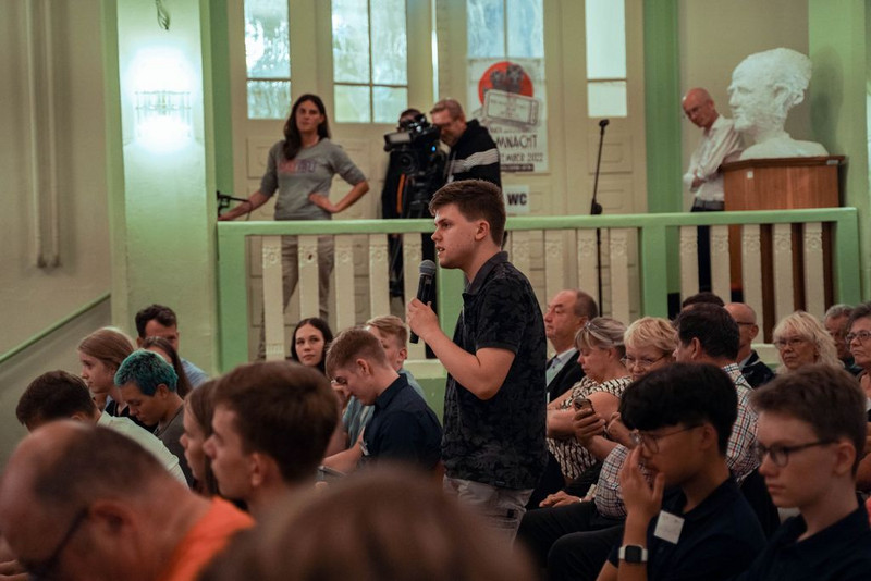Wenn auch kurzfristig angekündigt, war die Aula so gut wie bis zum letzten Platz mit vielen Besuchern jeglicher Altersklassen gefüllt. Diese löcherten beide Politiker mit einer Vielzahl von Fragen. Ebenfalls anwesend waren viele politikinteressierte Schüler des WHG, die auf die Veranstaltung gesondert eingeladen wurden.