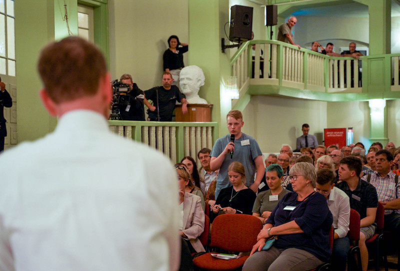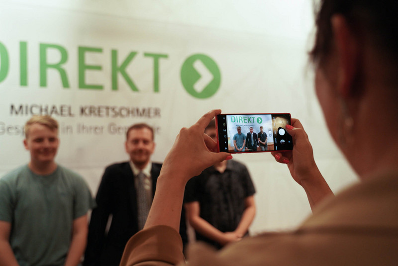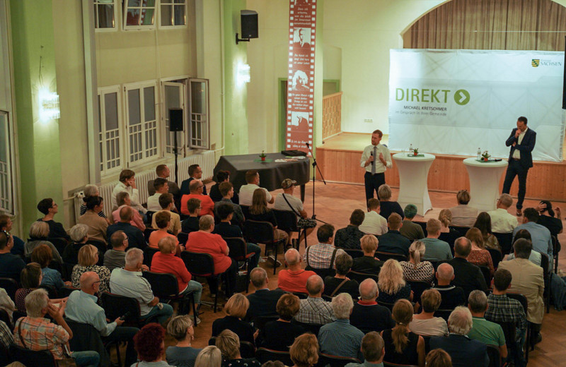 Danach stellten sie sich den Fragen der Gäste. Gute anderthalb Stunden kamen viele Fragen zu verschiedensten Themen. Kritik, Hilferufe, Anregungen und Hilflosigkeit, ob regional oder allgemein – den Themen waren quasi keine Grenzen gesetzt. Hierbei ging es um die Altenpflege, den Fachkräftemangel, Wirtschaftsförderung oder Umweltschutz. Verschiedenste Fragen also, die die Menschen momentan beschäftigen. Auch vor scharfen Anschuldigungen und deutlicher Kritik wurde nicht zurückgeschreckt. Herr Kretschmer meinte bei einigen Problemen aber auch ehrlich, dass er keine einfache Lösung habe, versprach aber sich der konkreten Angelegenheit anzunehmen.