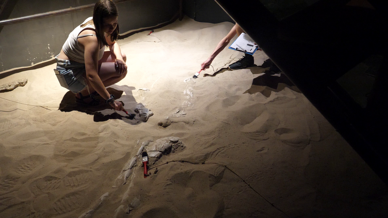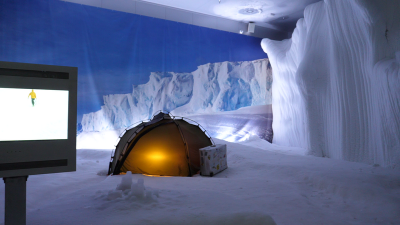 Weiter südwärts ging es dann in die Antarktis nach Königin-Maud-Land. Hier errichten wir den kältesten Ort der Ausstellung, mit minus 6 Grad Celsius, die uns angesichts unserer sommerlichen Kleidung ordentlich zittern ließen.