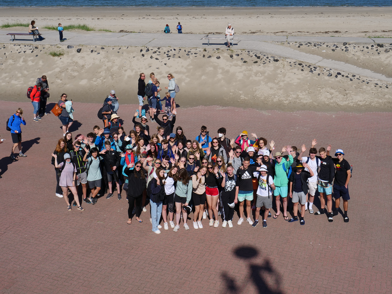 Pünktlich um halb acht nahm der Reisebus endlich Fahrt auf, der die Klassen 9a und 9bs des WHG Riesa am 27. Juni 2022 an die Nordseeküste bringen sollte, den Ort der traditionellen Fachexkursion Biologie. Schon auf der Hinfahrt wurde die Vorfreude auf die anstehende Woche in Ostfriesland spürbar, als der gesamte Bus unter der Leitung von Herrn Wendt das Lied „An der Nordseeküste“ von Klaus & Klaus sang – erst zaghaft, mit jeder Wiederholung der eingängigen Strophen textsicherer und lauthalser.