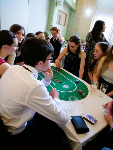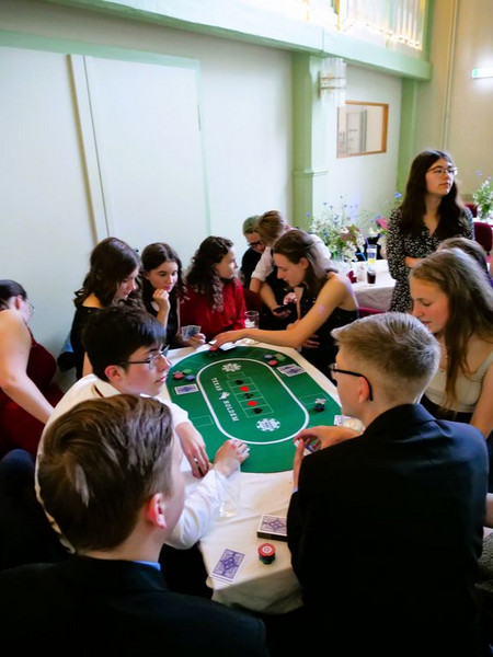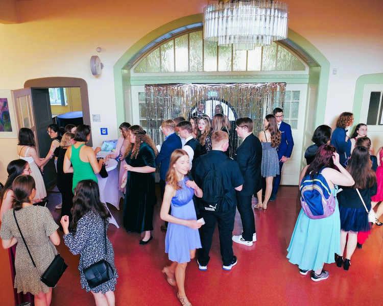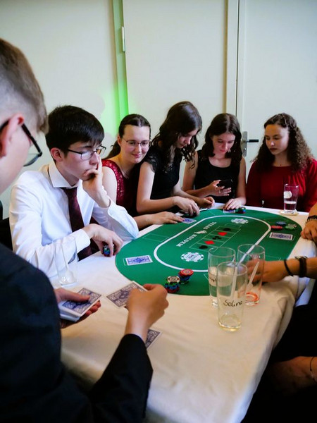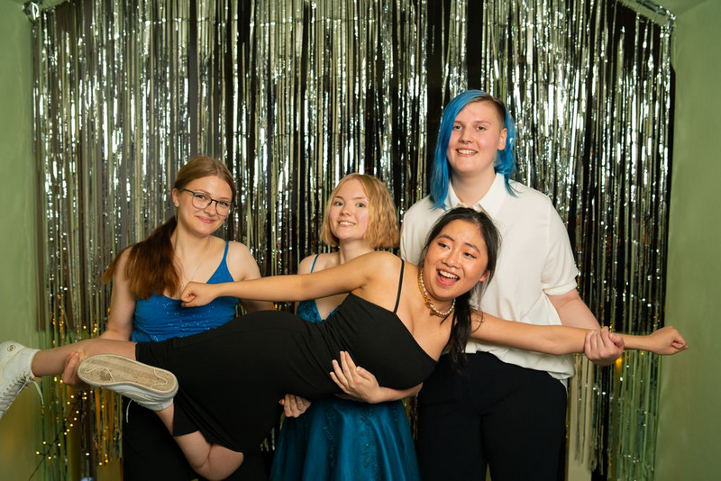 Kurz darauf folgte eines der vielen Highlights jenes Balls: ein fulminanter Show Act, einstudiert von einigen Tänzerinnen des Tanzstudio live. Natürlich blieb dieser nicht unbegleitet, sondern wurde musikalisch von einem DJ untermauert, der die Prom-Gäste den gesamten Abend über unterhielt. Nach der professionellen Tanzeinlage hatten auch die Schüler*innen und Lehrer*innen die Möglichkeit, ihr tänzerisches Talent zu zeigen und sich elegant in Form eines Wiener Walzers über die Tanzfläche zu bewegen. Der DJ spielte an jenem Abend allerdings nicht nur Lieder aus der Tanzschule, sondern auch Songs, die jedermann kennt. Mit Liedern wie „Macarena“, „Cordula Grün“ oder „Everybody“ von den Backstreet Boys, wurden sogar die Schüchternsten aufs Parkett gelockt und so bestand der Prom neben tollen, lustigen Gesprächen und leckerem Essen vor allem aus einem: Tanzen, tanzen, tanzen. Wer trotz der zahlreichen ansteckenden Lieder nicht tanzen wollte, hatte die Möglichkeit, sich auch abseits der Tanzfläche stilvoll zu beschäftigen und beispielsweise Poker zu spielen oder professionelle Fotos von sich und seinen Freunden vor der Fotowand, einem weiteren Highlight des Abends, machen zu lassen.
