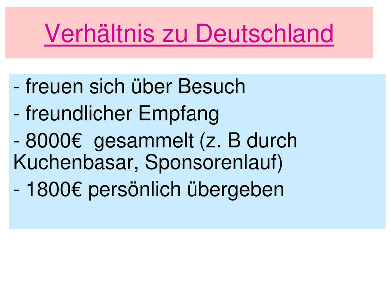 Marina Keil und Annemarie Oßmann besuchten im Sommer 2014 unsere Partnerschule und überbrachten Spendengelder in Höhe von 8000 Euro.