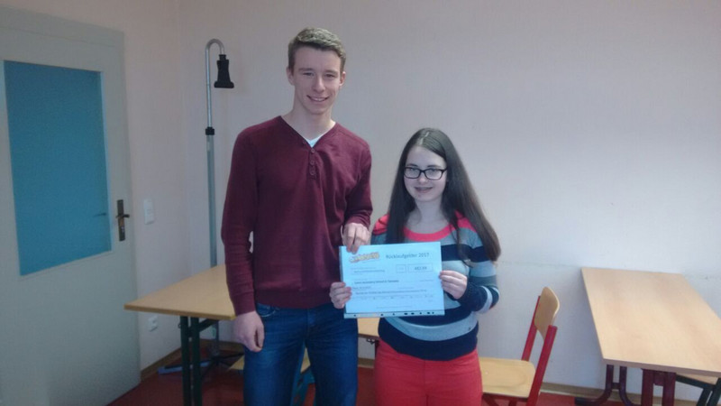 Am 19. 4. 2018 überwiesen wir 2000 Euro Spendengelder an unsere Partnerschule auf Kome Island. Es sollen u.a. ein Kopierer nebst Zubehör und eine Kamera angeschafft werden. Anton und Alexandra bei der Übergabe eines Teils des Rücklaufgeldes von Genial sozial.