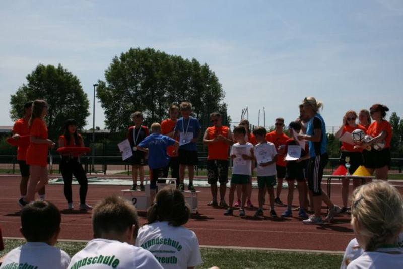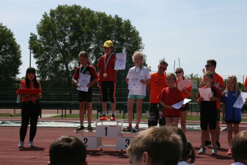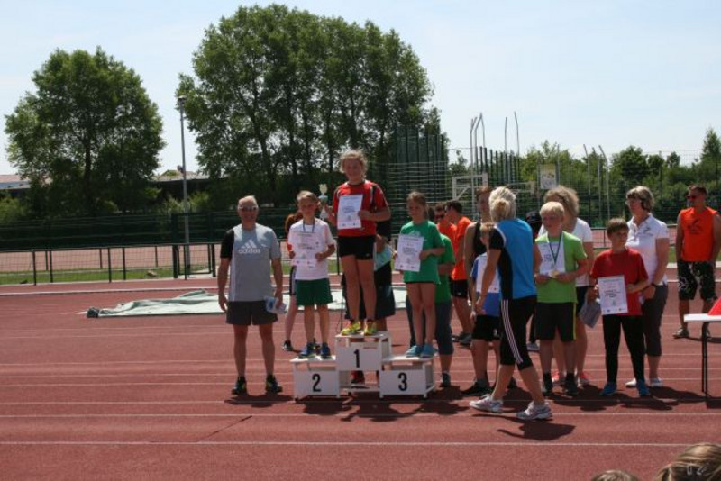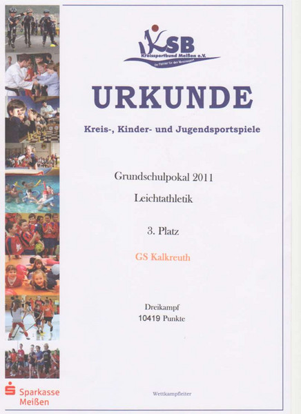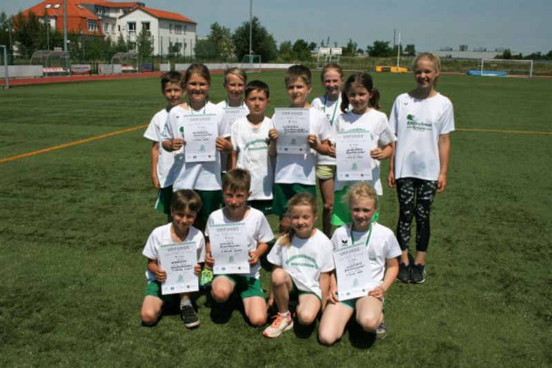 der 2. bis 4. Klasse in Großenhain auf der neuen Sportanlage Husarenpark. Beim erstmals ausgetragenen Grundschulpokal der Leichtathletik gingen die Schüler über 50m, Weitsprung und Ballweitwurf an den Start. Gewertet wurde der Dreikampf Mädchen und Jungen der Klassen und die Schulwertung. Wir belegten den